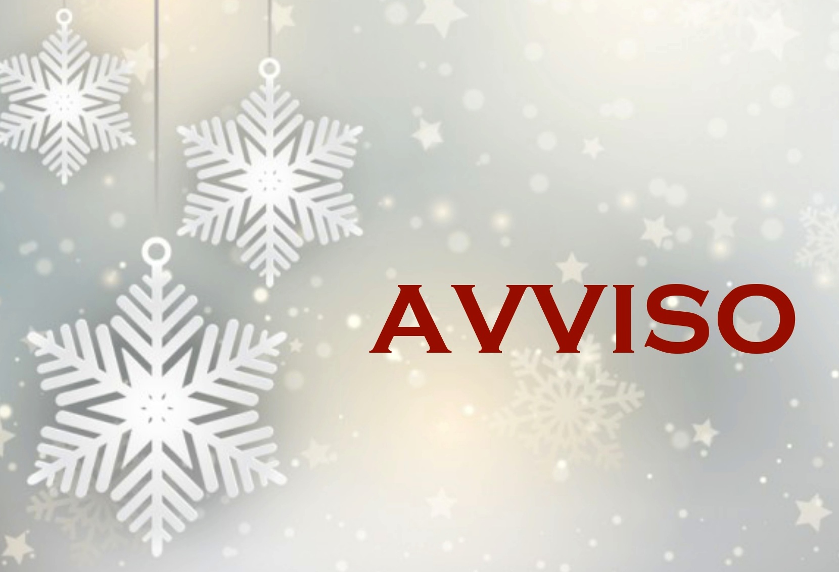 Descrizione Con la presente SI COMUNICA che Gli Uffici Comunali saranno chiusi i giorni: • Mercoledì 24/12/2025 – POMERIGGIO CHIUSO • Sabato 27/12/2025 – CHIUSO • Mercoledì 31/12/2025 – POMERIGGIO CHIUSO • Lunedì 05/01/2026 - CHIUSO